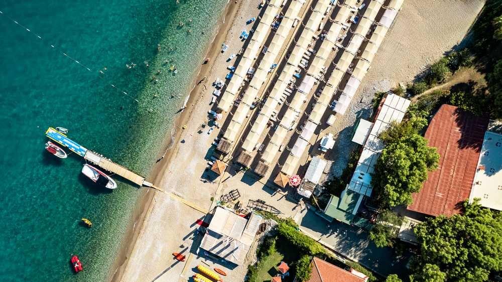 A strandra 10 percenként ingyenes buszjárat közlekedik.