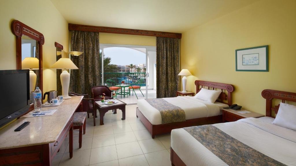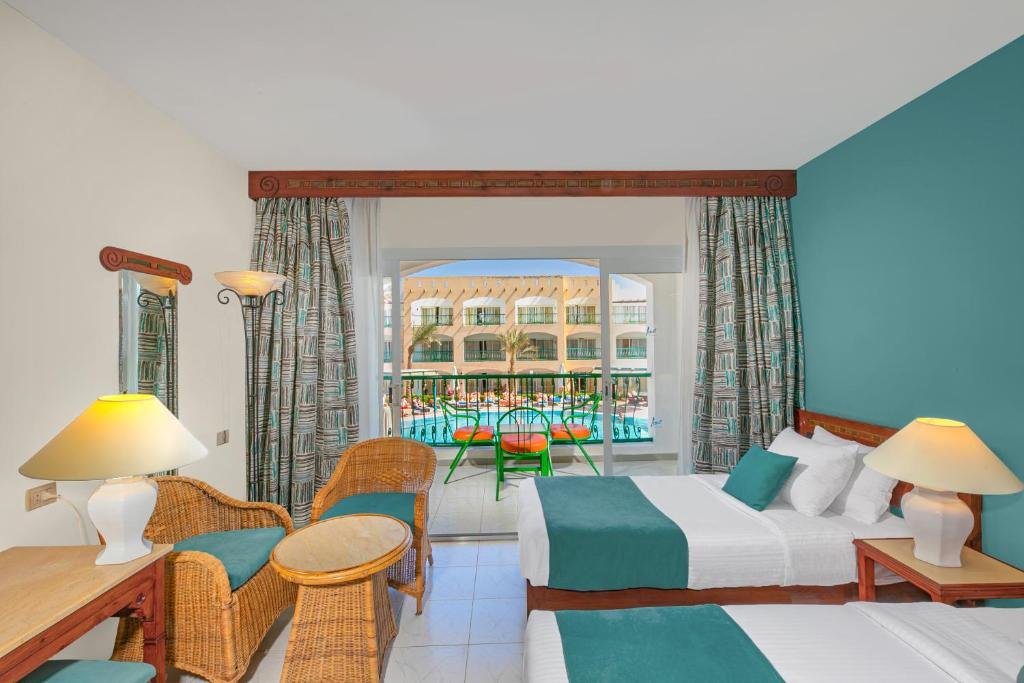 A szálloda mintegy 250 m-re található a saját korallos- homokos strandjától, melyet az Arabia Azur Resort testvérszállodájával használnak közösen.