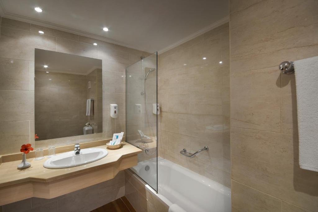 SZOBÁK:   Az ízlésesen berendezett standard szobákban (DR/SR) (42 m²) kád/zuhanyzó, WC, hajszárító, telefon, széf, műholdas LCD síkképernyős TV, mini hűtőszekrény, kávé/teafőző, légkondicionálás/fűtés, WiFi (térítés ellenében) és a medencére néző erkéllyel/terasszal.