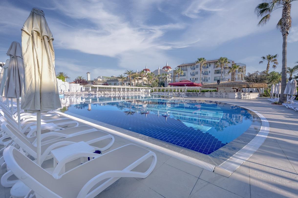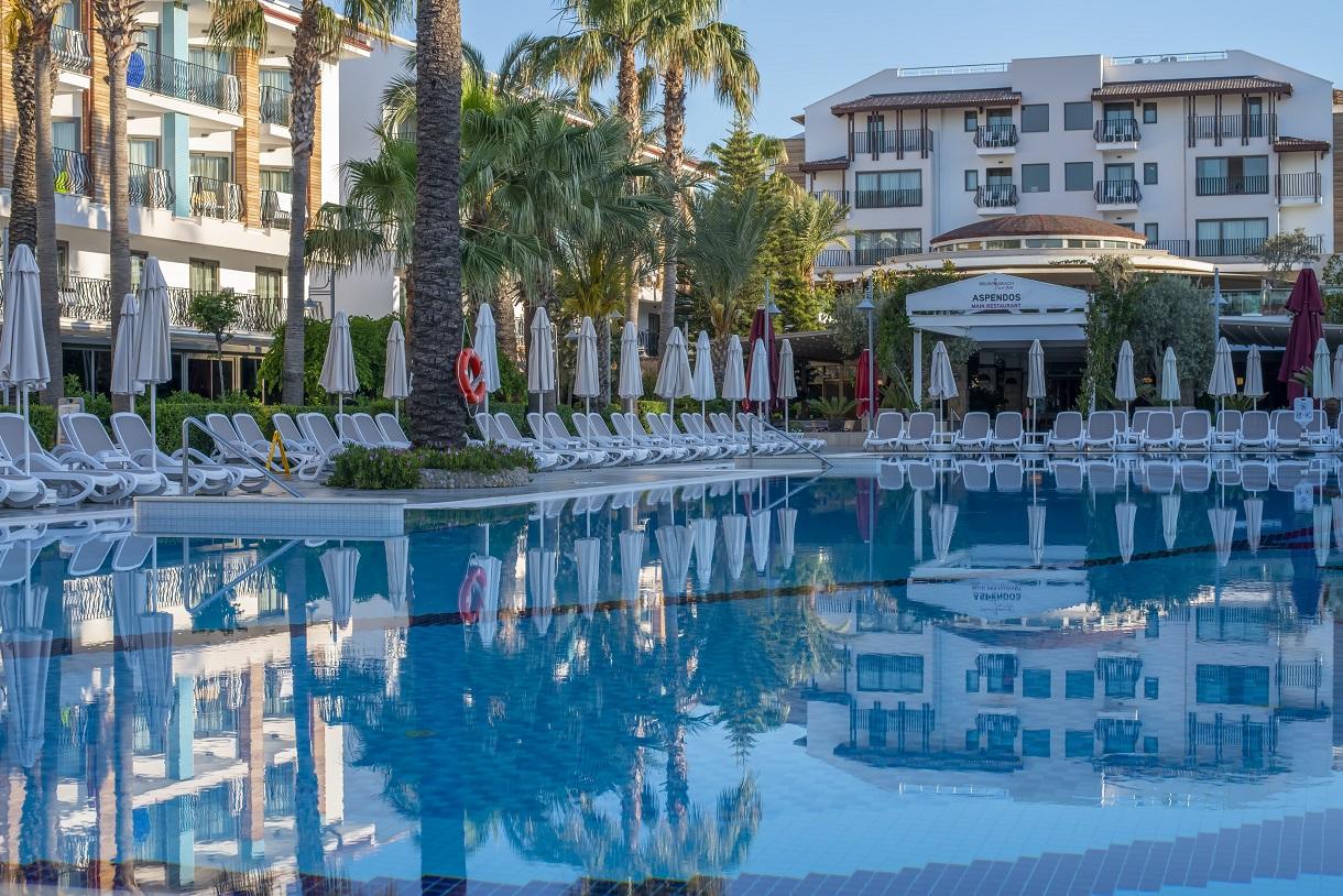 A 2022-ben felújított Belek Beach Resort szálloda közvetlenül a tengerparton fekszik, a törökországi antalyai nemzetközi repülőtértől kb. 40 km-re, Belek városközpontjától kb. 11 km-re, Manavgattól kb. 50 km-re.