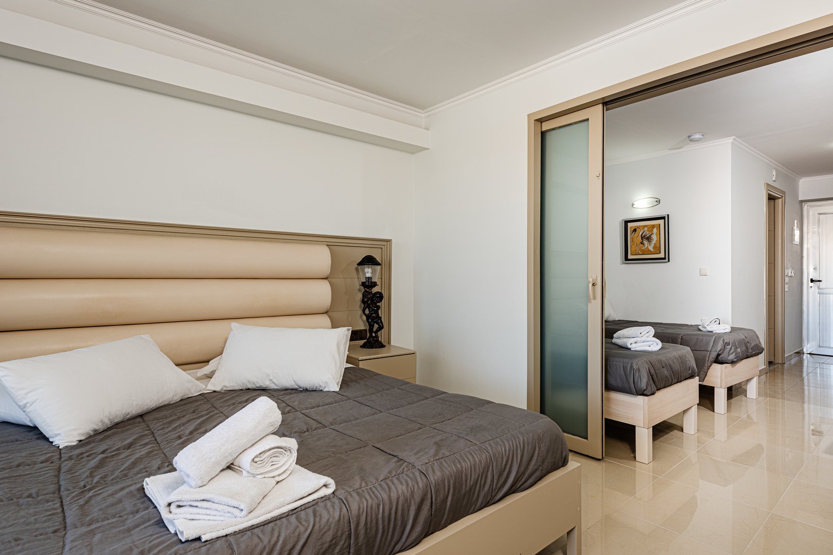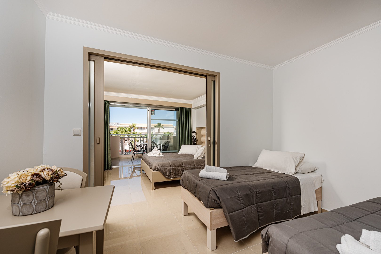 Négyfős családi szobák: kb. 30 m2, kétlégterű szobák (2 normál különálló ággyal), légkondicionálóval, TV-vel, telefonnal, mini hűtővel, WIFI-vel, fürdőszobával, erkéllyel vagy terasszal rendelkeznek. A WIFI ingyenes, azonban amennyiben a vendégek gyorsabb internetet szeretnének, ez esetben a helyszínen van lehetőség rá 15 EUR/eszköz áron.