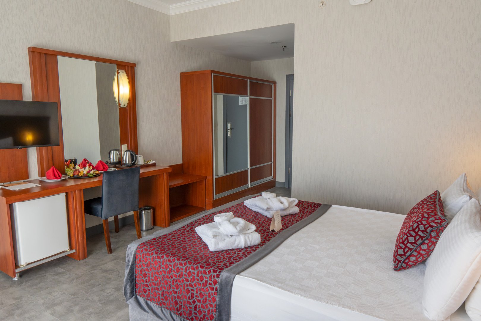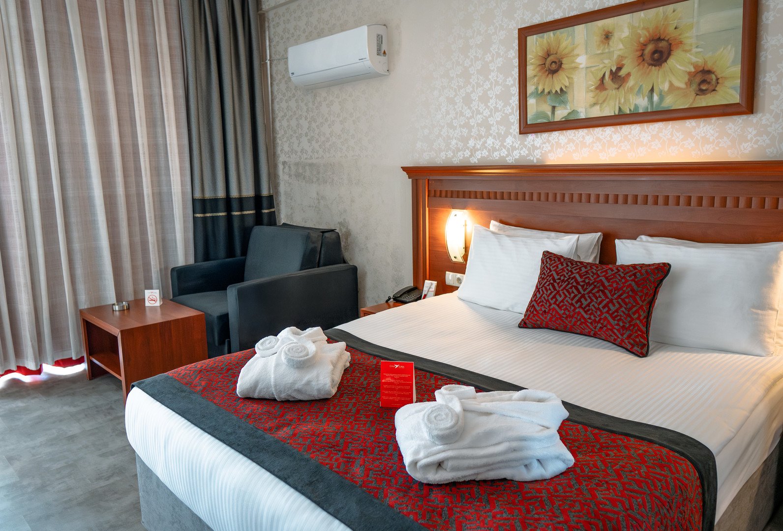 Standard kétszemélyes kertre vagy tengerre néző szoba érhető el (max egy fő számára pótágyazható). Mérete kb. 25 m2.  A szobák 2023-ban lettek felújítva, modern, elegáns stílusuk van. A szobában van fotel, Wifi, kávéfőző, minibár, pipere kellékek, hajszárító és széf.