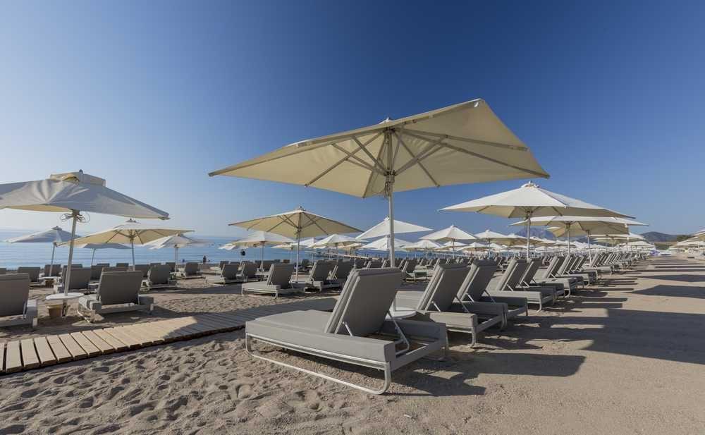 Saját homokos és kavicsos strand található a szálloda mellett.