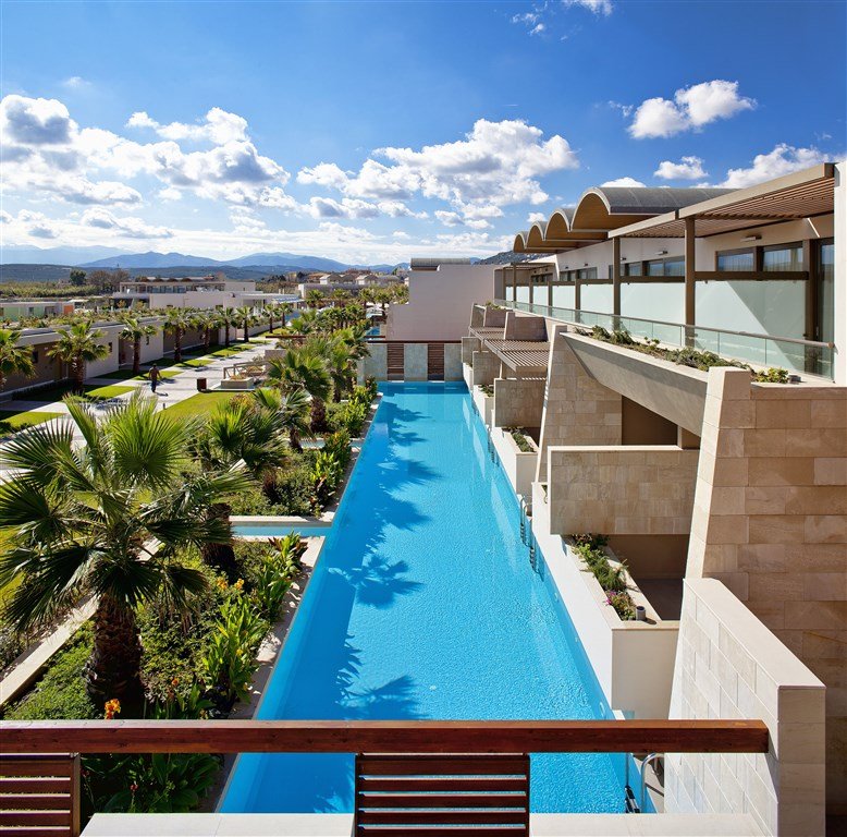 Modern szállodakomplexum főépülettel és több melléképülettel, kb. 100 m-re a kis halászfalu, Kolymbari központjától, kb. 23 km-re nyugatra Chaniától (rendszeres buszjárat) és kb. 39 km-re a chaniai repülőtértől; buszmegálló a szálloda közelében.
