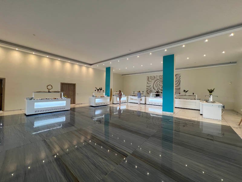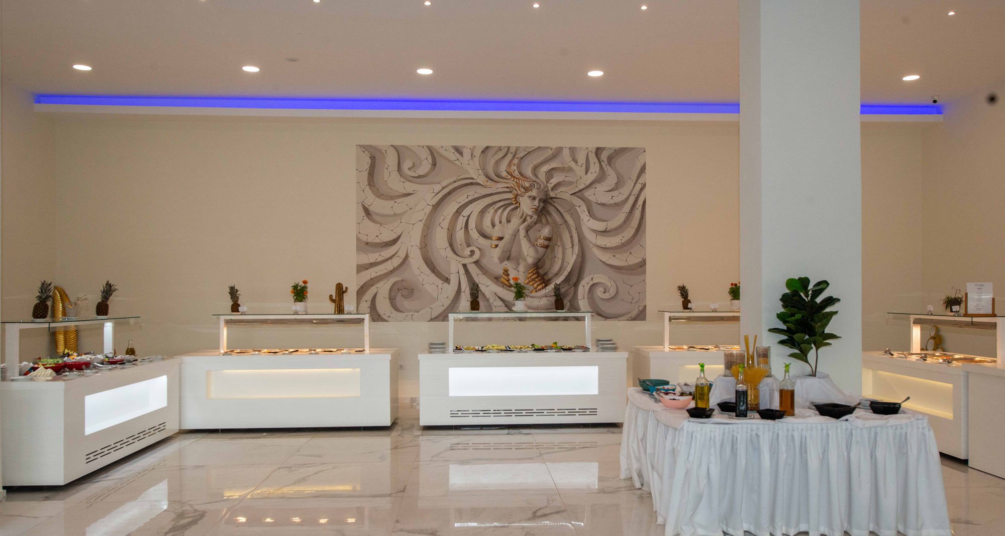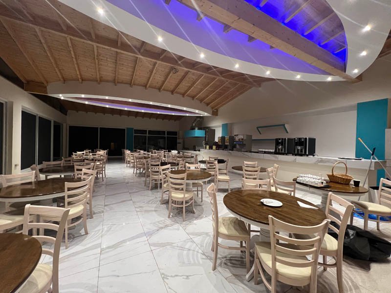 A medence bárban italok 10:30 és 22:45 között elérhetők. Szendvicsek 11:00 és 12:00 között, míg tea és sütemények 15:00 és 18:00 között fogyaszthatók. Koktélokat 20:00 és 22:45 között kínálnak. Az italválasztékban helyi márkás szeszes italok, vodka, rum, gin, brandy, tequila, tsipouro, helyi csapolt sör, házi bor, ouzo, üdítők, narancslé, szűrt kávé és tea szerepel. A palackozott víz térítés ellenében biztosított.
