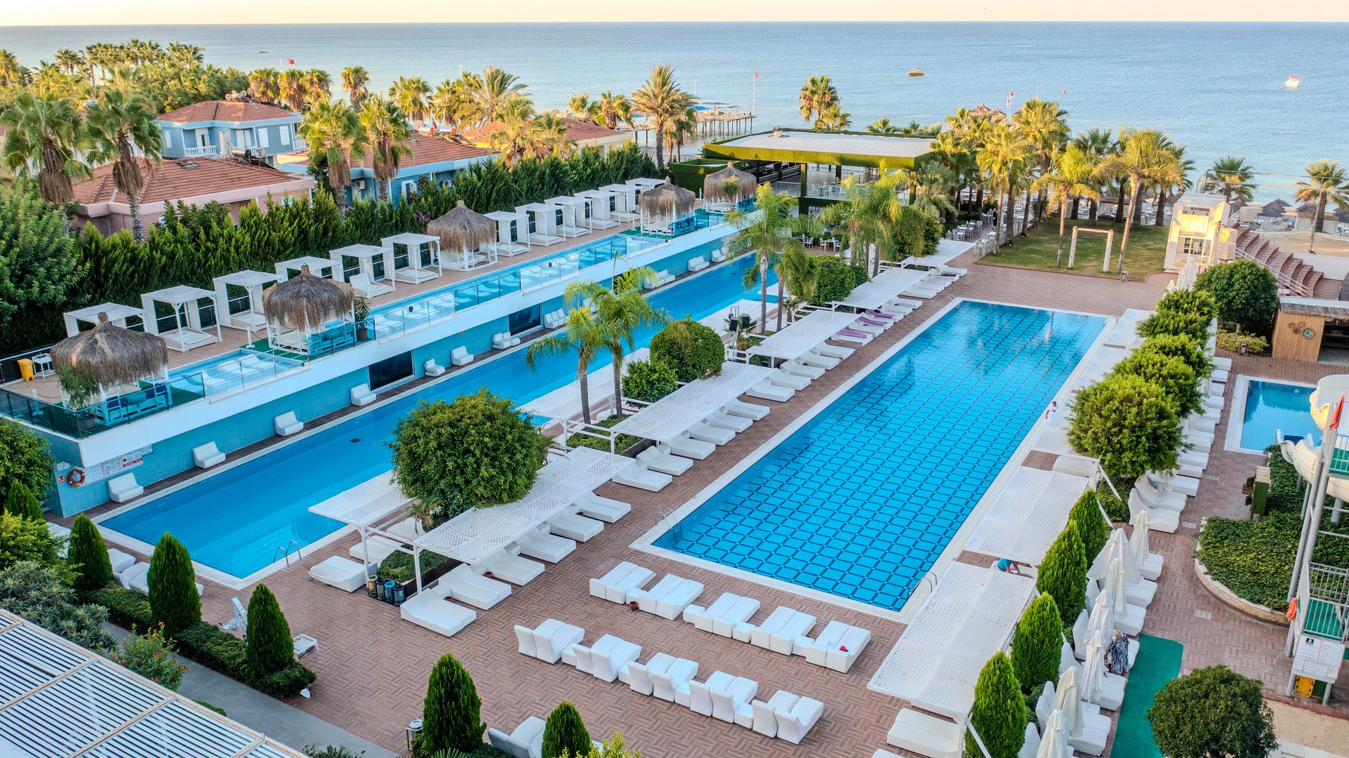 A szálloda szolgáltatásai közé tartozik a recepció, liftek, főétterem szabadtéri terasszal, két à la carte étterem, lobby bár, medence bár, konferenciaterem és üzletek. A lobbyban ingyenes Wi-Fi áll rendelkezésre. A vendégek részére két úszómedence, egy csúszdás medence és gyermekmedence biztosít szórakozást. A medencéknél napágyak, napernyők és törölközők ingyenesen használhatók, a matracok és a strandtörölközők azonban térítés ellenében vehetők igénybe. A mólón és a medence mellett napozó pavilonok felár ellenében bérelhetők. Térítés ellenében a következő szolgáltatások is elérhetők: fodrászat, orvosi szolgálat és autókölcsönző, illetve Wi-fi a szálloda többi területén és a szobákban.