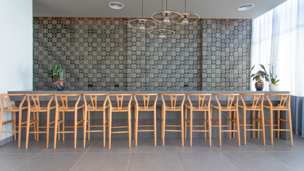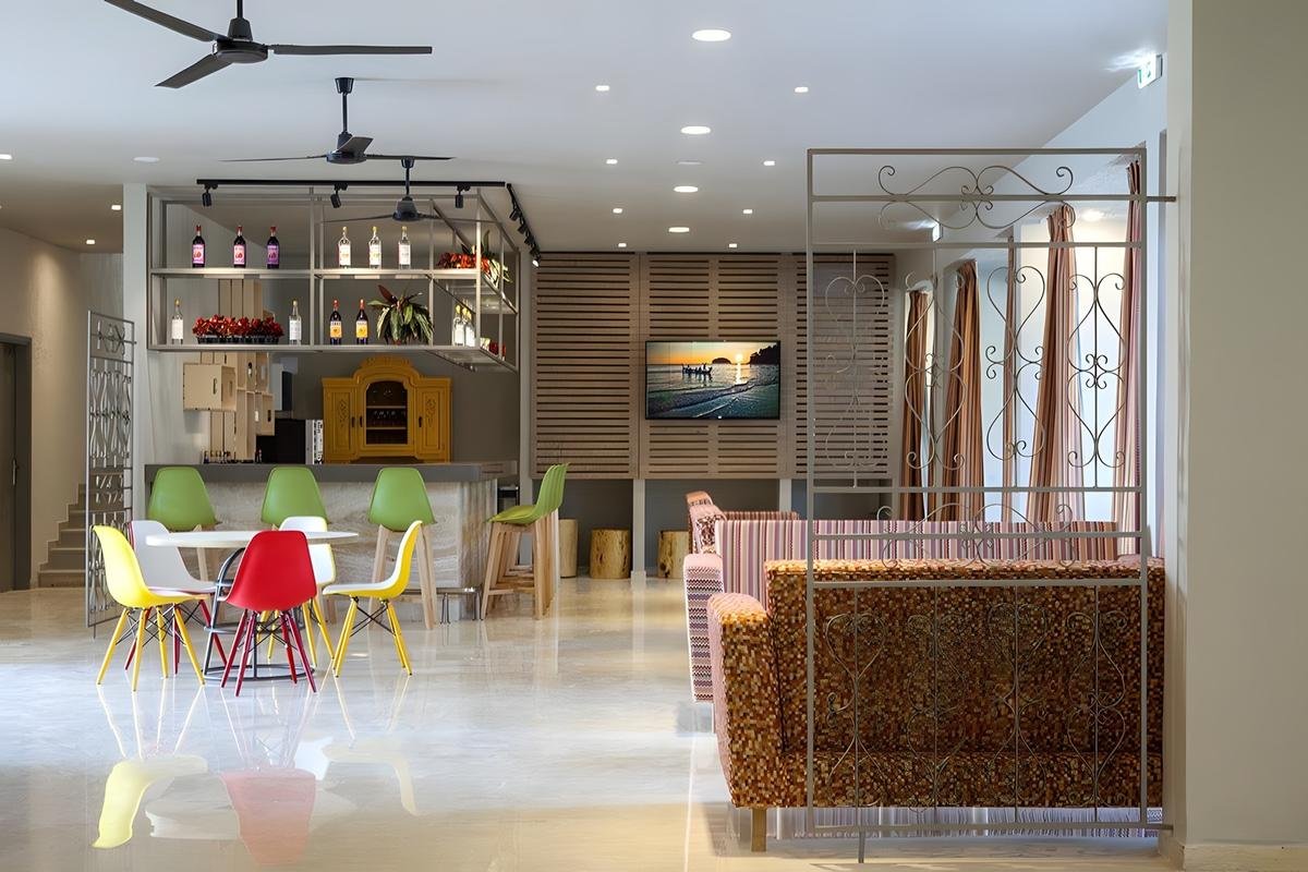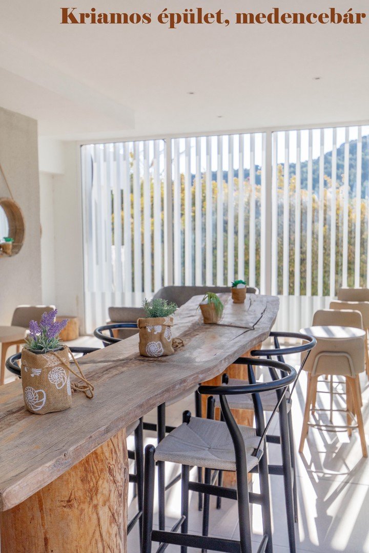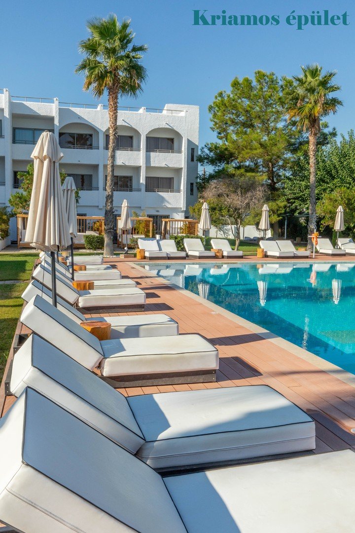 A szálloda 2016–2017-ben épült, és közös üzemeltetésben működik a mellette található Kriamos Blue Hotellel. Egy festői dombon fekszik, körülbelül 500 m²-es gondozott kerttel. Modern, elegáns stílusú, négycsillagos szálláshely, két épületben összesen 107 szobával, lifttel elérhető emeletekkel. A recepción 24 órás ügyelet működik, a lobbyban internet-sarok és TV-szoba áll rendelkezésre, a területen ingyenes wifi elérhető. Az udvaron két medence található napágyakkal és napernyőkkel, a Kriamos épületben további egy medence üzemel. A szálloda 16 éves kortól fogad vendégeket, MasterCard és Visa kártyákat elfogad.