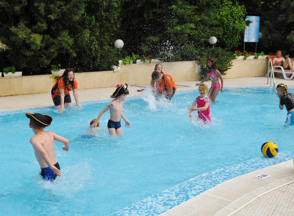 Gyermekmedence (szabadtéri), miniklub, animációs program 4–12 éves gyermekeknek (játékok, foglalkozások, mini diszkó), babaágy (ingyenes, kérésre, elérhetőség függvényében), bébiszitter szolgáltatás (minimum 2 nappal előre foglalva, felár ellenében, 4–12 éveseknek), etetőszékek az étteremben, gyermekbüfé a főétteremben, játszótér.