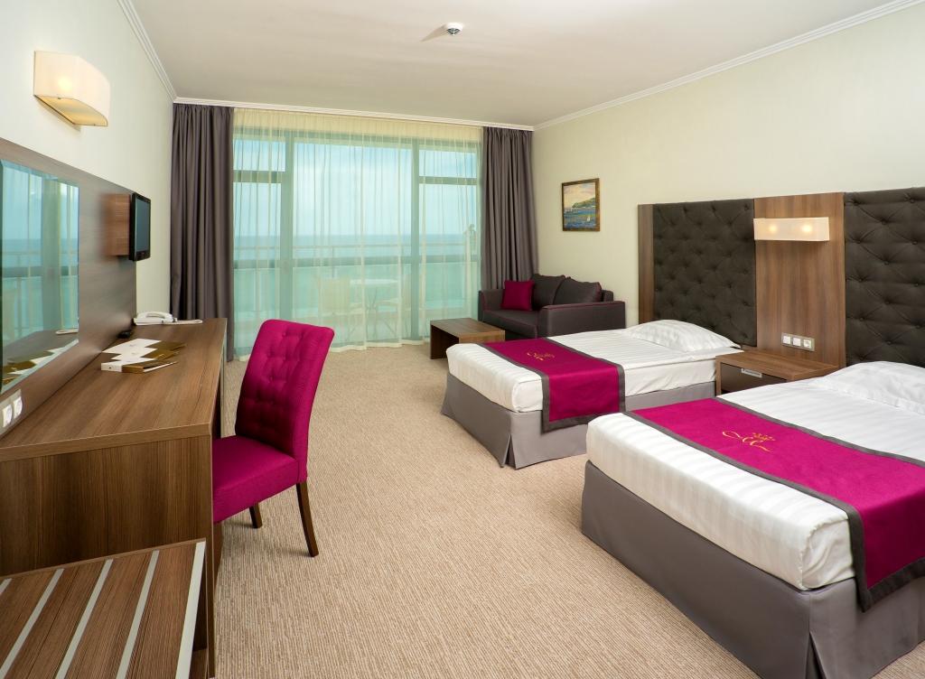 Egylégterű lakosztályok (standard és deluxe) – kb. 52 m² (2 normál + 3 pótágy, max. 2+3 vagy 3+1 fő); hálószobából és ajtóval elválasztott nappaliból állnak, 1 franciaággyal és 1 kihúzható kétszemélyes kanapéval (szükség esetén hotel pótágy). Parkra vagy tengerre néző kilátás (Deluxe lakosztályok: magasabb emeleten, tengerre néző kilátással).