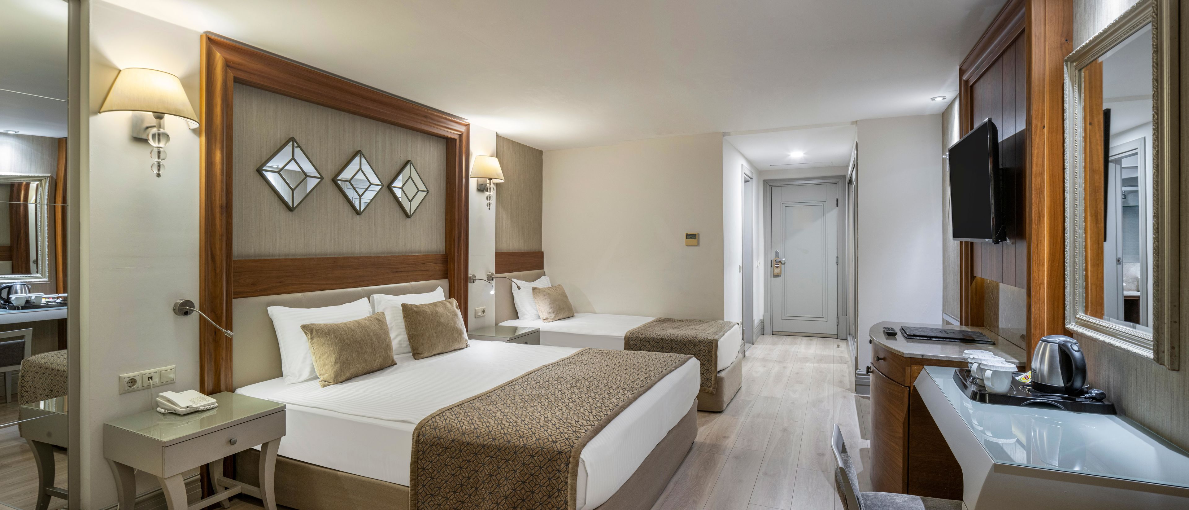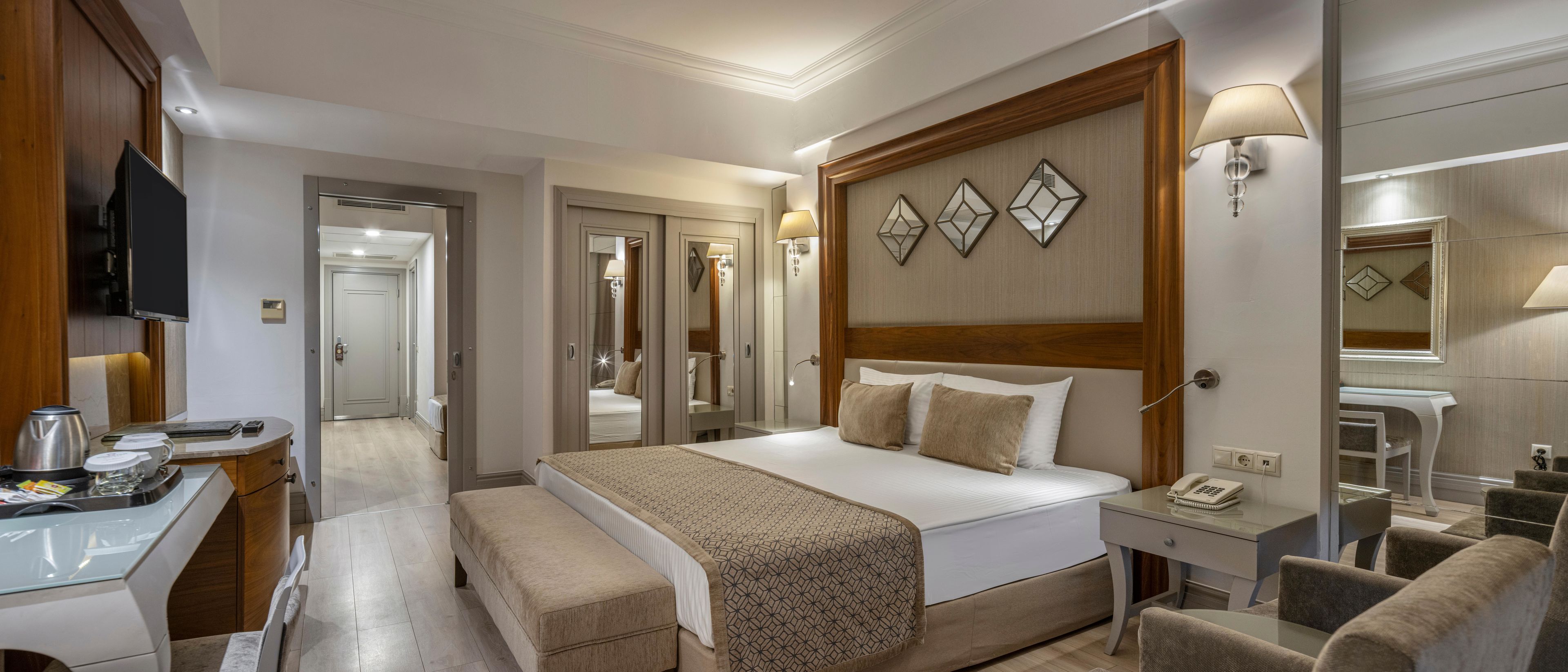 A szobákat légkondicionáló berendezéssel, központi fűtéssel és fürdőszobával szerelték fel. A legtöbb szoba felszereltségét terasz egészíti ki, amely tökéletes kikapcsolódást nyújt. A legtöbb szoba tengerre néző kilátást biztosít. A szobák egy king size ággyal és egy kihúzható kanapéval rendelkeznek. Ezen kívül van széf és minbár is. Az alapfelszereltséghez tartozik egy tea-/kávéfőző is. A nyaralás kényelmét szolgálja az internet-hozzáférés, a telefon, a TV-készülék és WiFi. A szobákban szobapapucs is található. A fürdőszobák felszereléséhez zuhanyzó és hidromasszázskád tartozik. A fürdőszobában található hajszárító, kozmetikai tükör és fürdőköpenyek a mindennapi kényelmet szolgálják. Különlegesség, hogy a vendégek a fürdőszobákban kozmetikai cikkeket is találnak. Családi szobát és nem dohányzó szobát is foglalható.