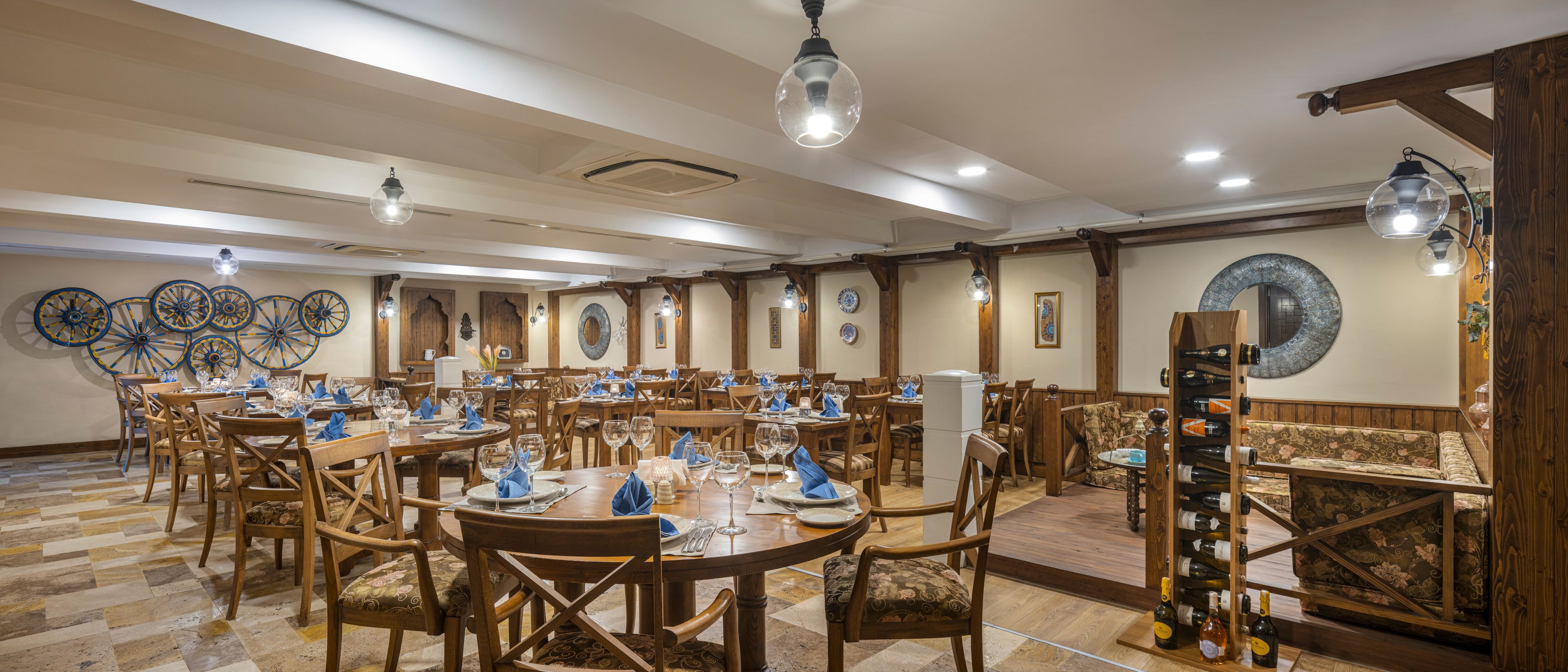 Speciális all inclusive ellátás. Reggeli, ebéd és vacsora külön is szerepel a kínálatban. Külön kérésre szívesen készítenek diétás ételeket és vegetáriánus ételeket. A fő étkezések mellett snackeket is kínálnak. A vendégek italfogyasztása az árban benne foglaltatik. Alkoholmentes italok, alkoholos italok és nemzetközi termékek is kaphatók.