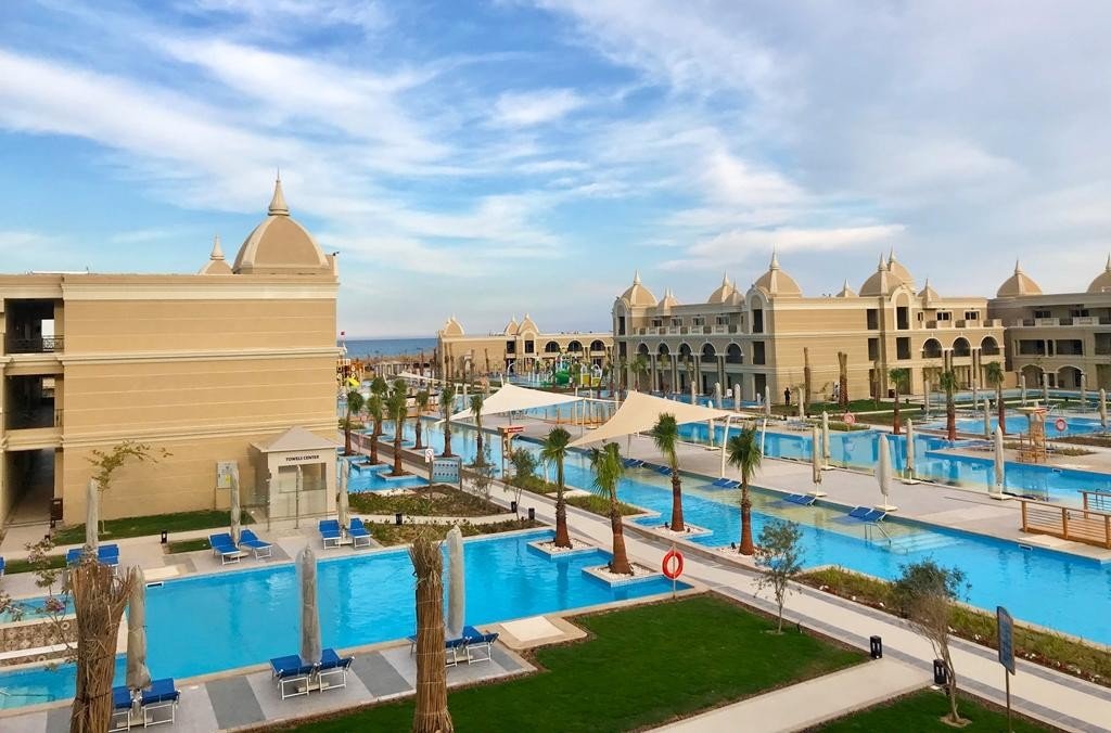 A szálloda 50 000 m² alapterületű, összesen 387 szobával rendelkezik. A hallban egy 24 órás recepció és előcsarnok található - a WLAN itt ingyenesen elérhető. Van még egy fő svédasztalos étterem, 2 à la carte étterem (olasz és ázsiai), 2 bár, strand és medence bár, kávézó, fodrász és gyógyfürdő. A tágas kertben található a modern édesvízi medence világ, amely 14 medencéből áll (részben fűthető), 2 különálló gyermekmedencével, napozóterasszal, valamint az utca másik oldalán (kb. 200 m) található a modern és nagy vízipark, mely kicsik és nagyok számára egyaránt élménydús kikapcsolódást biztosít. A nagyágyak, napernyők és strandtörölközők ingyenesen elérhetők a medencénél és a strandon egyaránt.