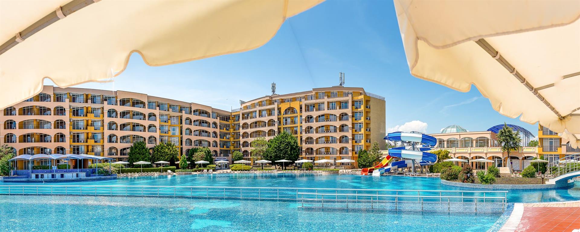 A komplexum egy 7 emeletes liftekkel rendelkező szállodából és apartmanokból áll.