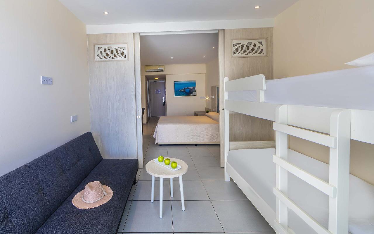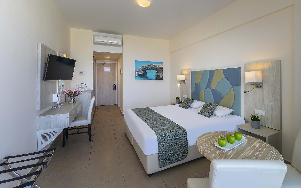 Fekvése: 214 szobás családbarát szálloda Ayia Napa népszerű tengerparti üdülőhely lankásabb részén, a Grecian Bay nevű öbölben, egy kiugró sziklaszirten, enyhén emelkedő területen található, csupán 450 méterre a gyönyörű Grecian Bay homokos strandjától. A szálloda nagy területen helyezkedik el, melyben egy impozáns csúszdapark is található. Ayia Napa városközpontja és a város egyetlen történelmi épülete, a Kolostor és a Thalassa Múzeum gyalogosan (kb. 1,5 km) taxival vagy tömegközlekedéssel is könnyedén elérhető (hétköznapokon, buszmegálló a közelben, jegyár napközben kb. 1.50 eur). Közvetlen közelében szoborpark található. Fedezze fel a Tofinis Hotelt, amely ideális választás mind a pihenni vágyó pároknak, mind az aktív családoknak. Élvezze a lenyűgöző aquaparkot, a tengerparti séták romantikáját, és a mediterrán gasztronómia különlegességeit. Foglalja le most, és tapasztalja meg Ciprus vendégszeretetét egy felejthetetlen nyaralás során!