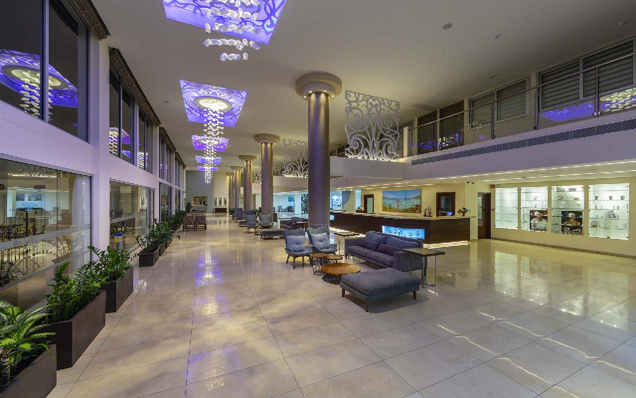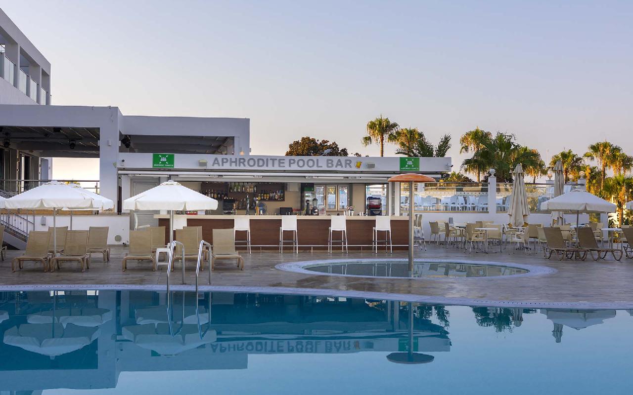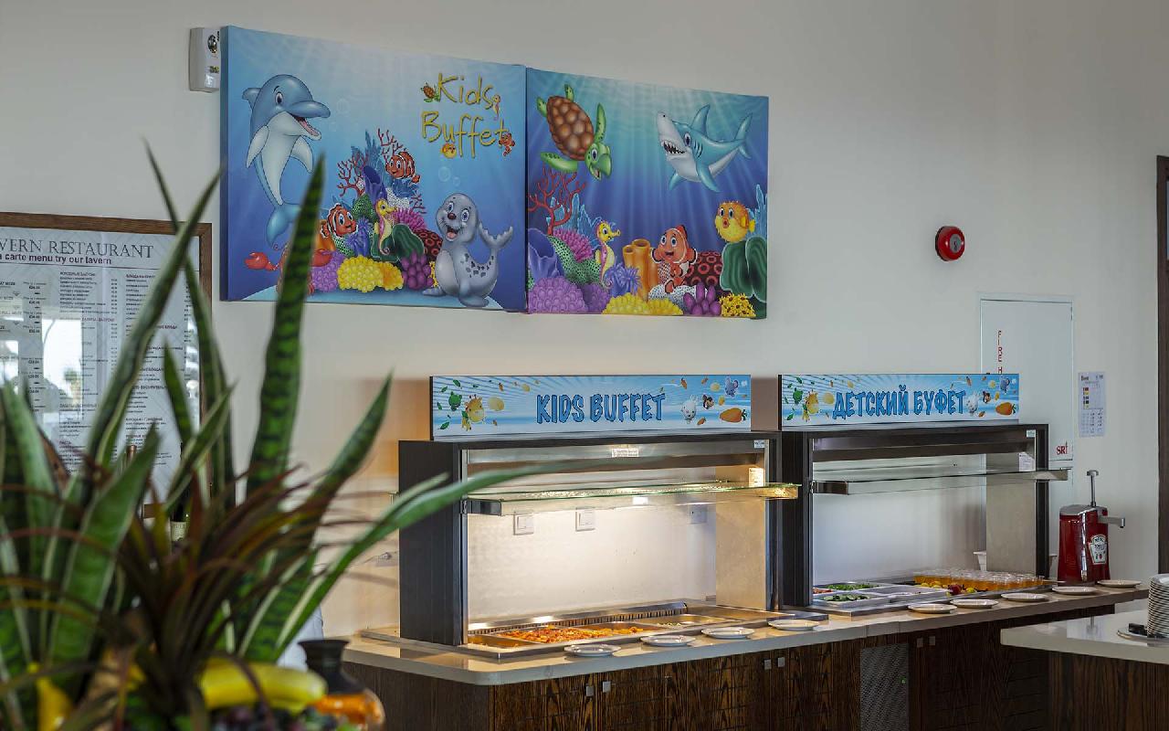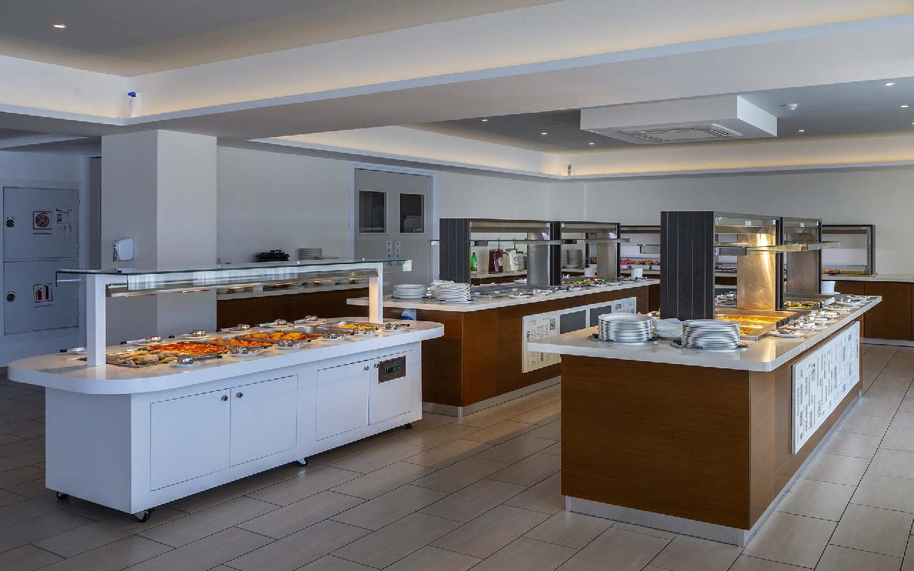 Étkezés: all inclusive ellátás, benne: büfé reggeli (07:30-10:00), ebéd (12:30-14:30) és vacsora (19:00-21:30), snack ételek és szendvicsek (11:00-12:30 és 15:00-18:00 óra között), jégkrémek, korlátlan italfogyasztás 10:00–23:30 óra között. Az italválaszték pohárban felszolgálva, a szálloda által meghatározott helyi és alkoholos és üdítőitalokra, vízre és gépi kávéra vonatkozik. Az import és palackozott italok fogyasztása térítéshez kötött. Minden este választékos tematikus büfé vacsorákkal (olasz, ciprusi, ázsiai, mexikói stb.).