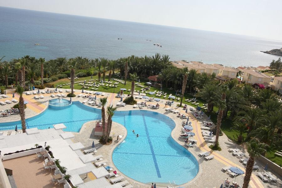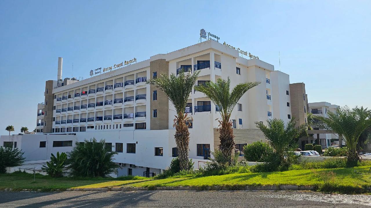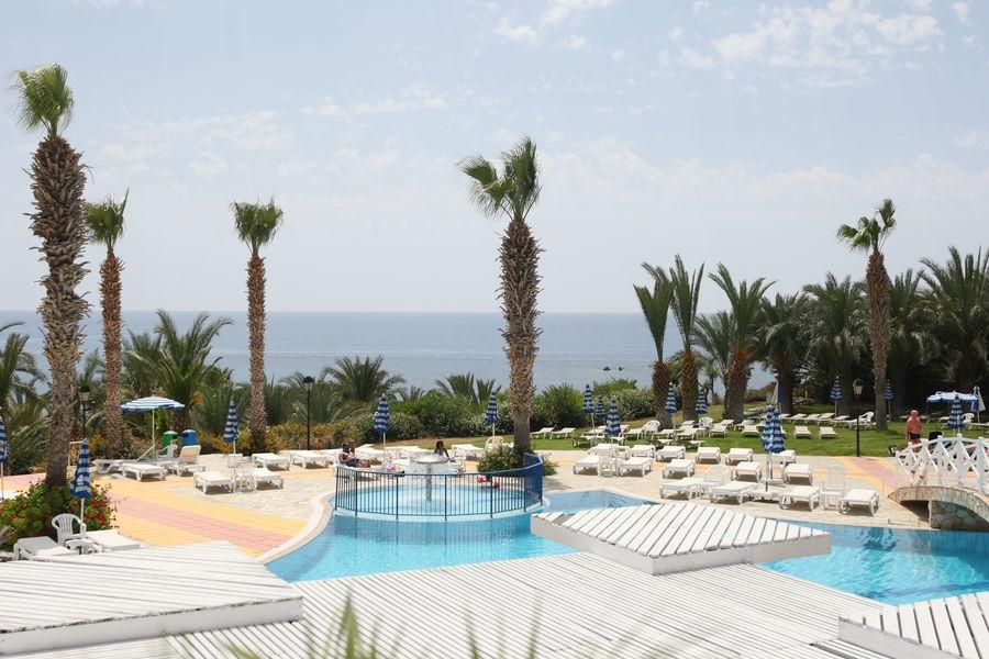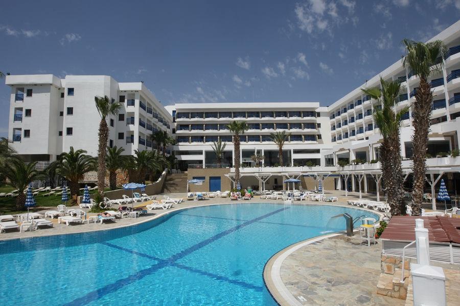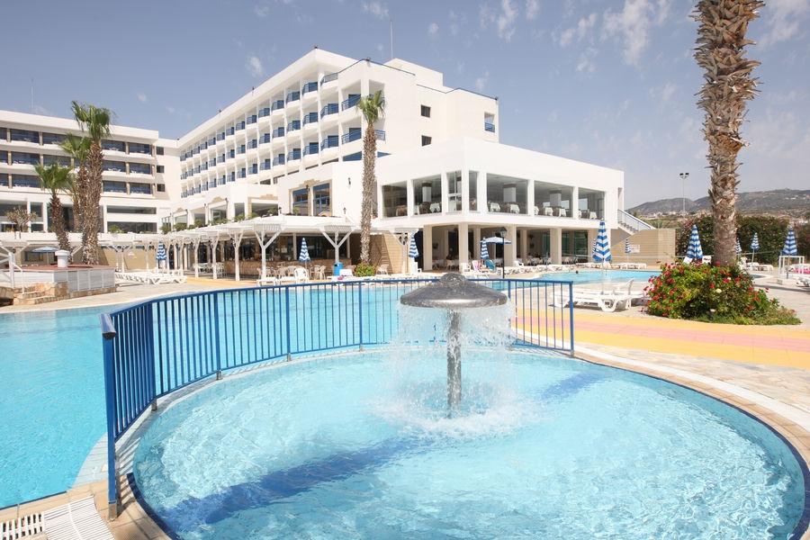 Fekvése: Paphos vonzáskörzetében, a Coral Bay övezetben, üdülővárosi, de mégis csendes környezetben, domboldalon, a kavicsos, köves tengerparttól 100 méterre található, klasszikus stílusú, régebbi építésű 206 szobás szálloda. A térség egyik legszebb strandja a homokos strand Coral Bay kb.10 perc séta (1km) távolságra, az üdülőrész központja 800 méternyire, a Paphos-i városközpont pedig kb. 12 km-re található. Buszmegálló a szállodától 400 méternyire.