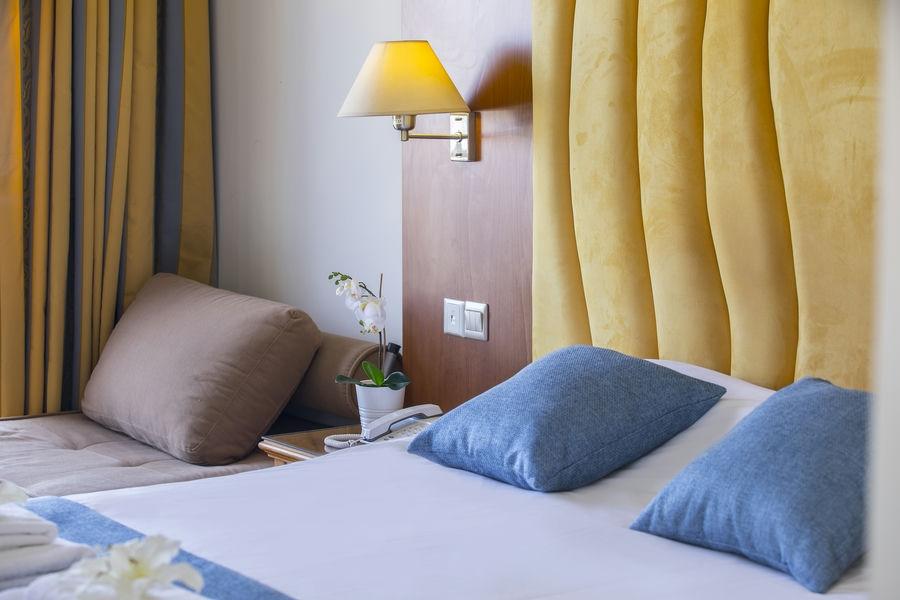 Szobák: minden standard szoba egyhálószobás (~23m2), fürdőszobás, légkondicionálóval, hajszárítóval, tv-vel, vízforralóval (tea és kávékészítési lehetőség) és telefonnal felszerelt. Széf és minihűtő, térítés ellenében bérelhető. A szobákhoz erkély vagy balkon tartozik, szárazföldre, oldal tengerre néző vagy tengerre néző kilátással. A családi szobák melyek felszereltségben megegyeznek a standard szállodai szobákkal, nagyobb alapterületűek (~30m2), szintén egyhálószobásak, kifejezetten kényelmes választás családok számára.