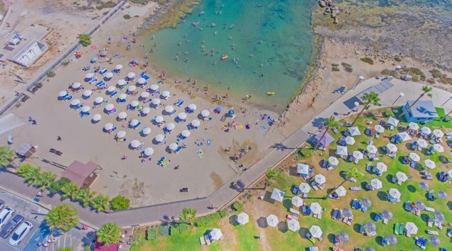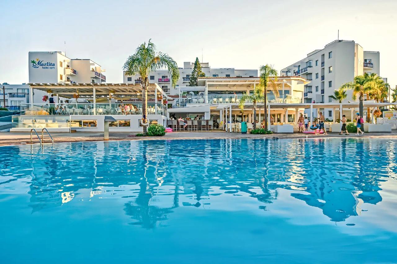 Fekvése: Protaras központjától kb. 2 km-re, az üdülőváros Pernera negyedében, közvetlenül a tengerparton, a nyugodt Marlita-öbölben található, mindössze néhány lépésre a szépen kiépített sétánytól, amely végigfut Protaras legnépszerűbb strandjai mentén. A homokos parton, a lassan mélyülő strand a szálloda előtt kb. 50–70 méterre fekszik, így ideális választás kisgyermekes családok számára is. A hotel csendes, családias környezetben épült, ugyanakkor Pernera központja és Protaras fő sétálóutcája is könnyedén megközelíthető rövid sétával. A közelben boltok, bárok, éttermek, vízisport-lehetőségek és buszmegálló találhatók, ahonnan Ayia Napa irányába is közvetlen járatok indulnak.  A Marlita Beach Hotel Apartments ideális ár-érték arányú, nagyon kényelmes, partközeli apartmanhotel, amely kifejezetten vendégbarát választás Protaras/Pernera térségében — főként azoknak, akik a nagy terekre, konyhás apartmanokra és a családias környezetre helyezik a hangsúlyt, de nem szeretnének lemondani az all inclusive ellátás kényelméről sem.