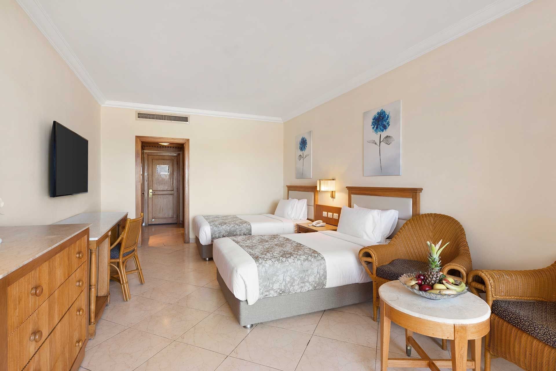 SUPERIOR: szobák (40 m²)   A szobákból a medencére, a parkosított kertre vagy a Vörös-tengerre nyílik kilátás. (DSG /DSP/ DSS ).   Foglalható DELUXE (DXM) szoba is (45 m²)    , ugyan a felszereltsége, csak picit nagyobbak és tengerre néző kilátással vannak. A szobák maximum egy pótággyal egy felnőttnek bővíthetőek.