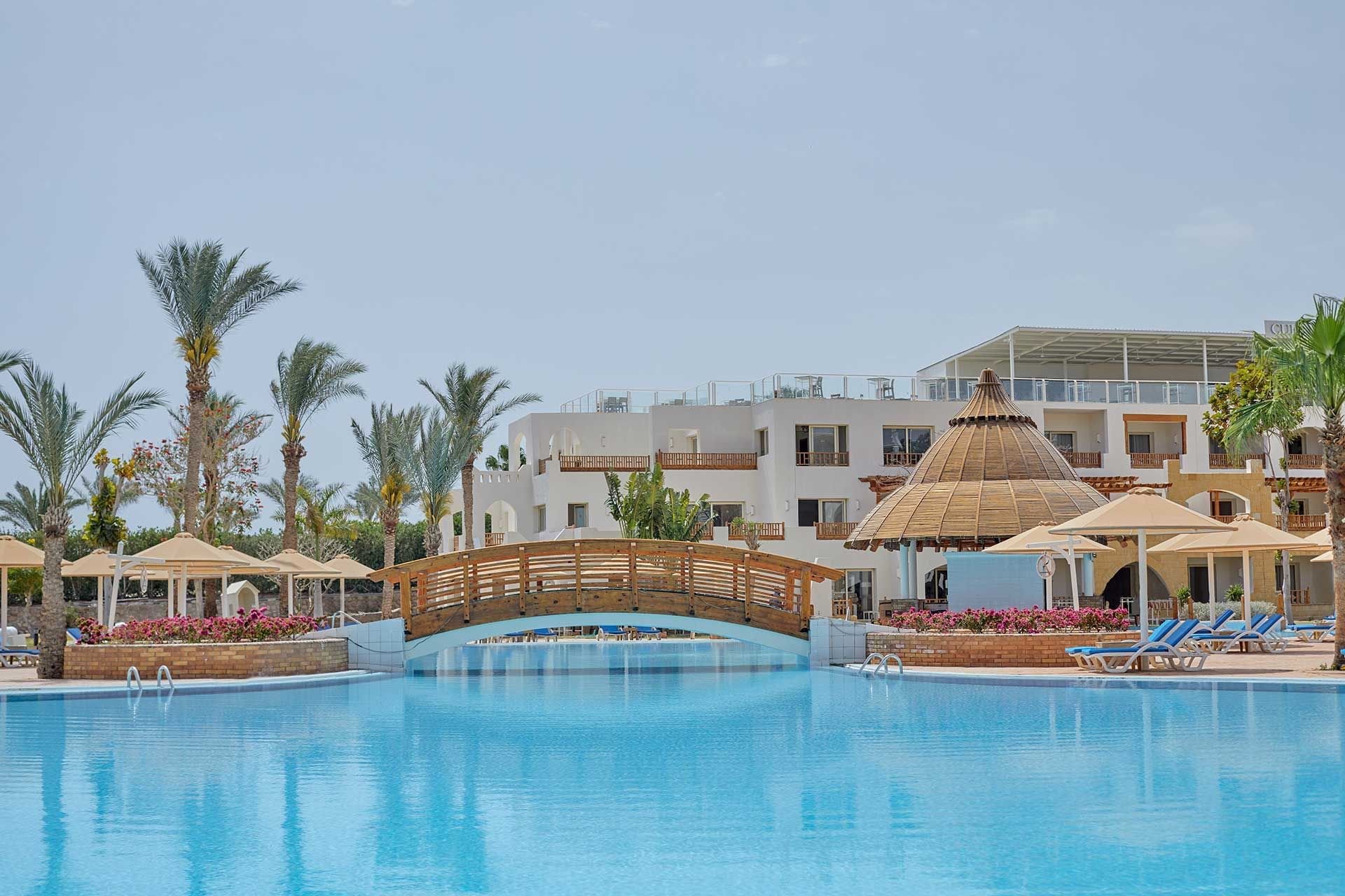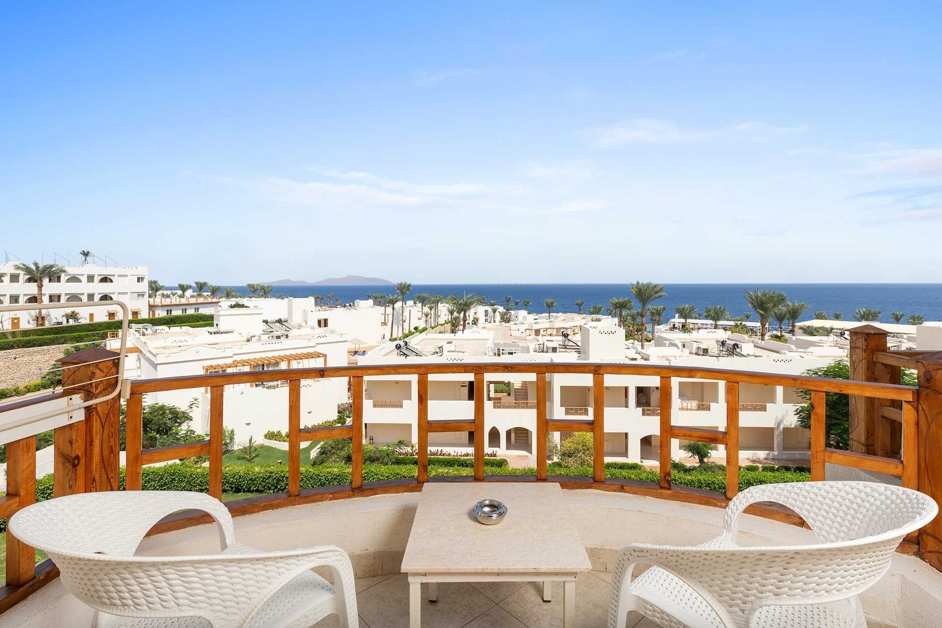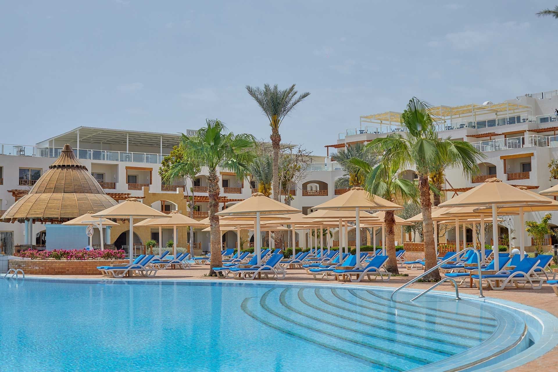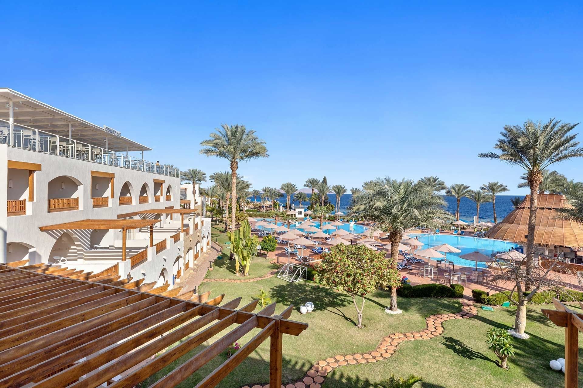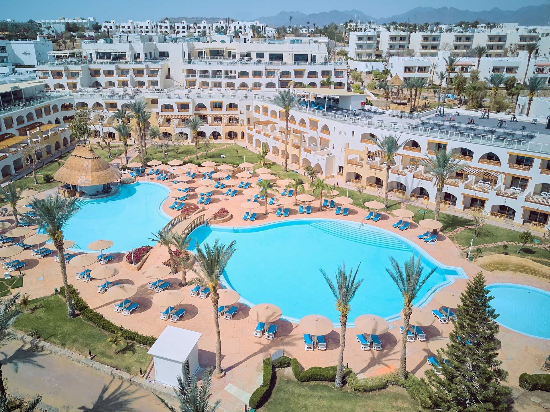 A Sarm el-Sheikh szigetén, az Om El Seid fennsík szélén található, közvetlenül a szálloda saját, 400 m hosszú kőstrandján, tengeri korallzátonyokkal (fürdőcipő ajánlott). A közvetlen közelben bevásárló- és szórakozóhelyek találhatók. A Sharm El Sheikh repülőtér körülbelül 18 km-re található.