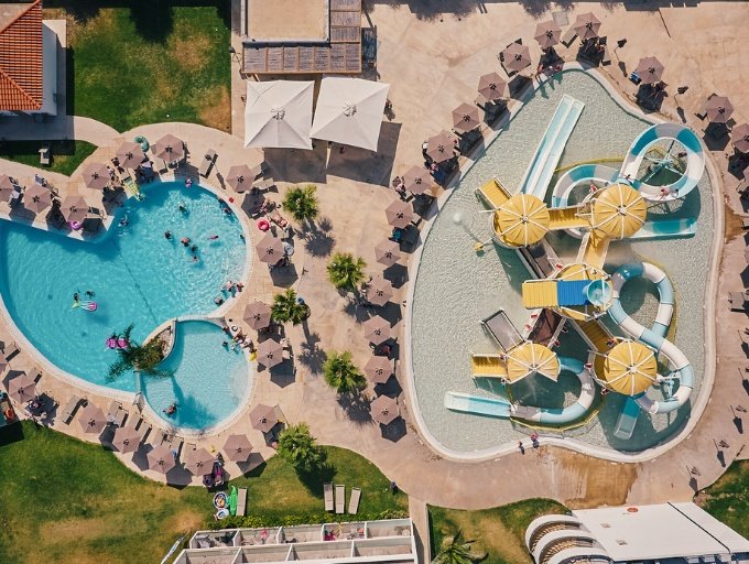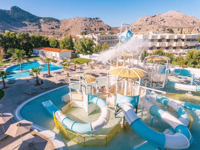Közvetlenül a tengerparton ;Kiváló helyszíne egy családi nyaralásnak;Saját csúszdapark;Széles All inclusive kínálat