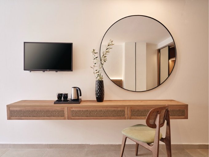 A standard kétágyas szobák (aquapark épület: különálló épület a helyi főúttal szemben) saját fürdőszobával (WC, fürdőszoba, hajszárító), légkondicionálóval, SAT/TV-vel, Wi-Fi, hűtőszekrénnyel, vízforralóval, telefonnal, széffel (ingyenes); erkéllyel vagy terasszal rendelkeznek.