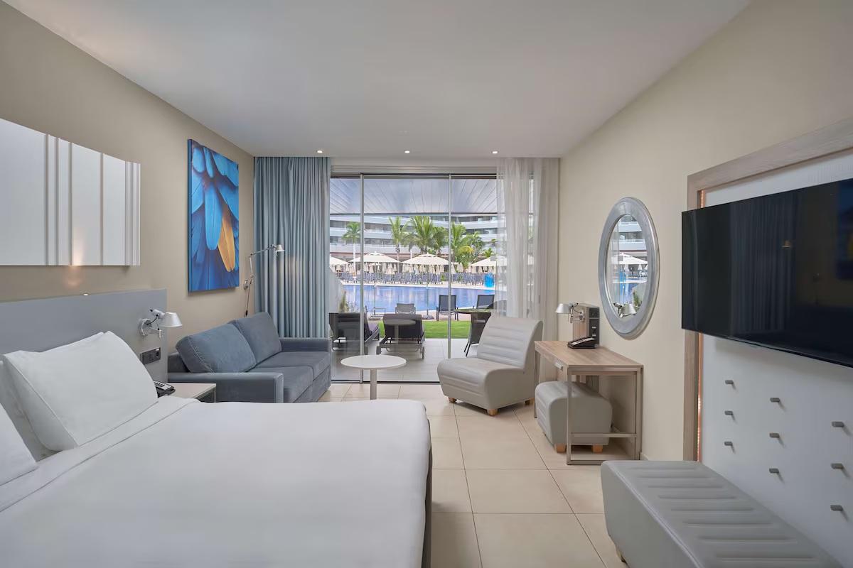 A tágas és elegánsan berendezett szobák és lakosztályok légkondicionálóval, ingyenes Wi-Fi-vel, műholdas és Apple TV-vel, valamint nagy erkéllyel vagy terasszal rendelkeznek, ahonnan élvezhetik a meleg kanári-szigeteki napot. A fürdőszobákban fürdőköpeny és papucs biztosítja a kényelmet.