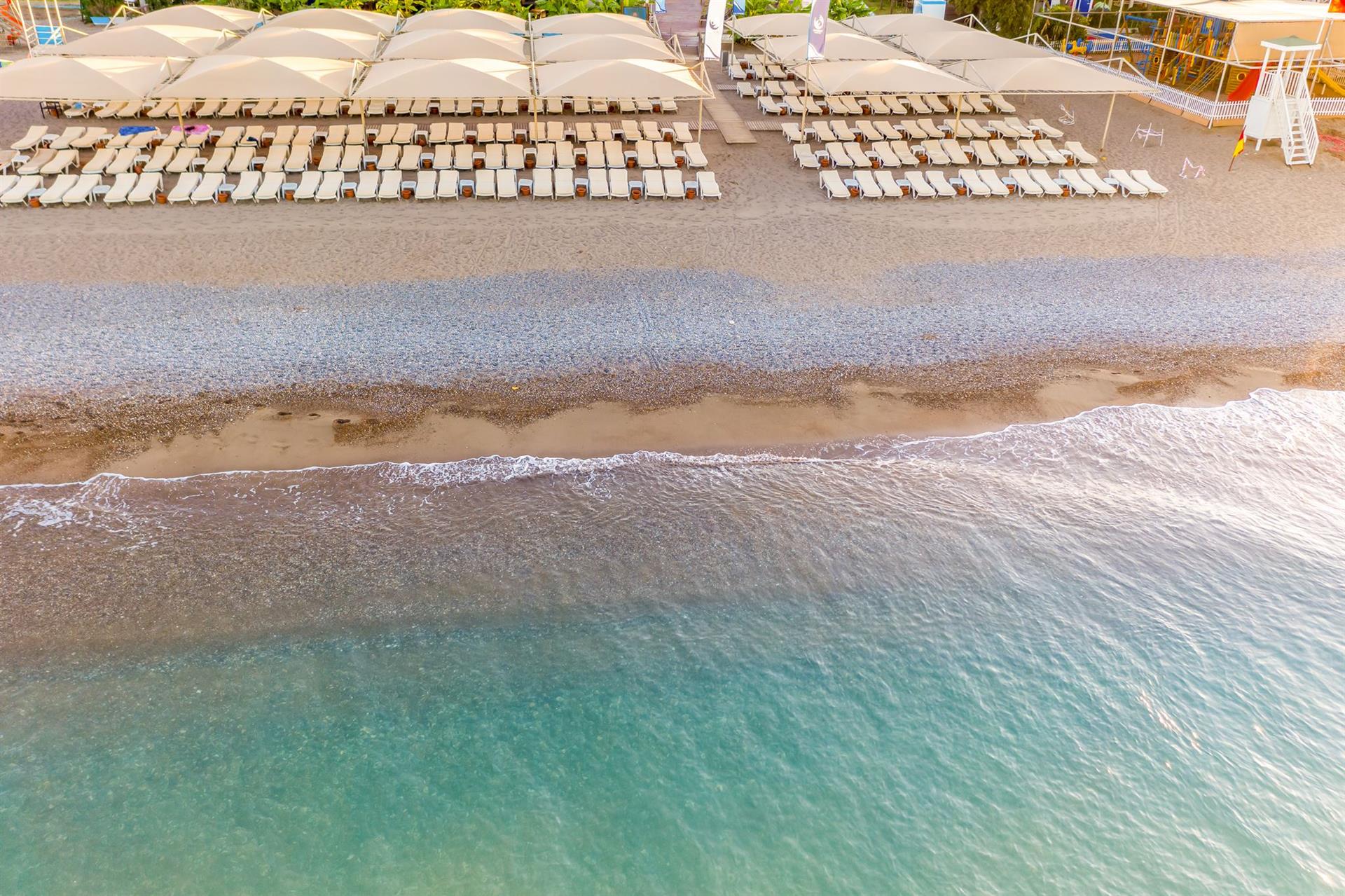 A szállodának közvetlen, homokos kavicsos privát tengerpartja van.