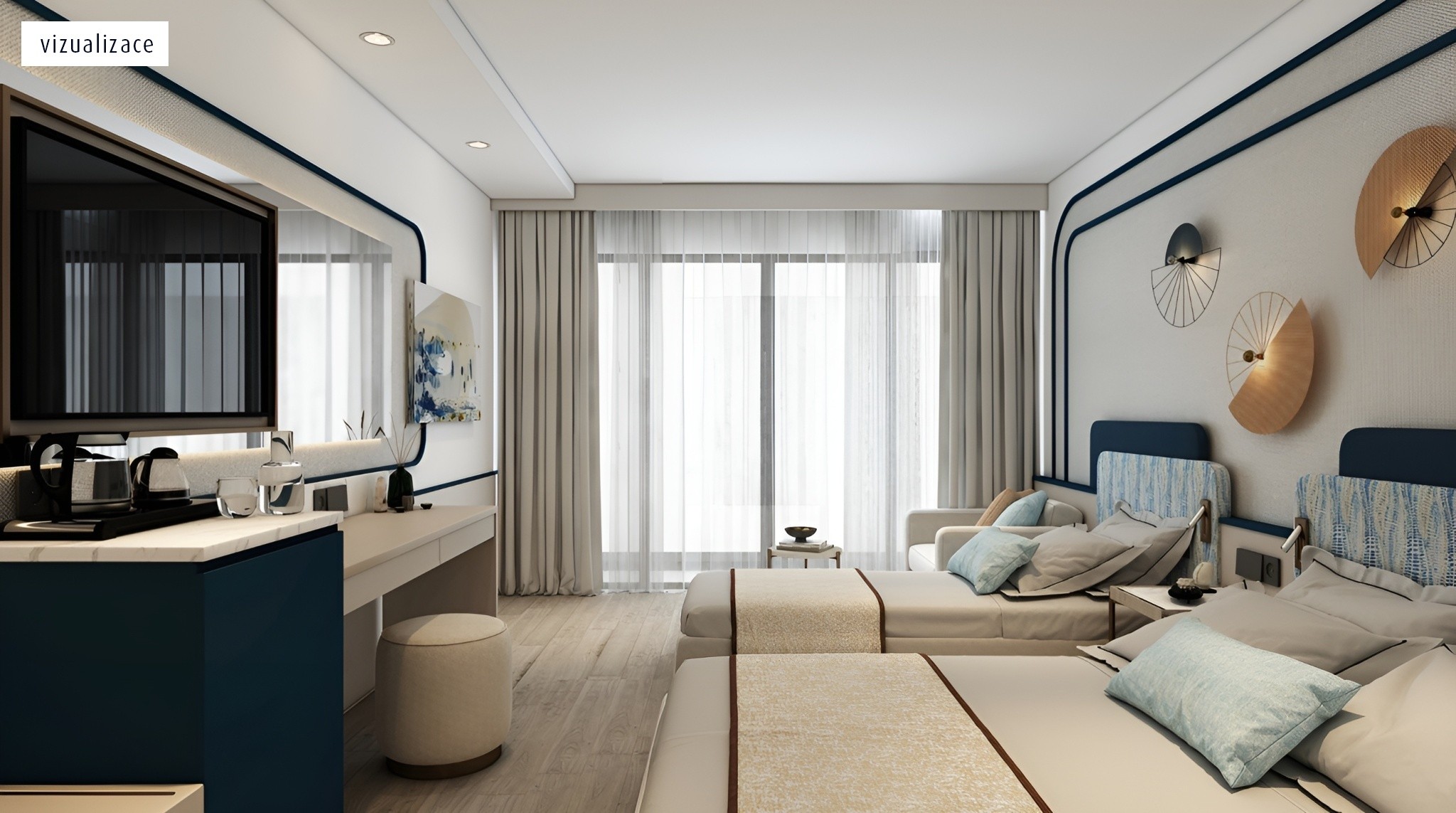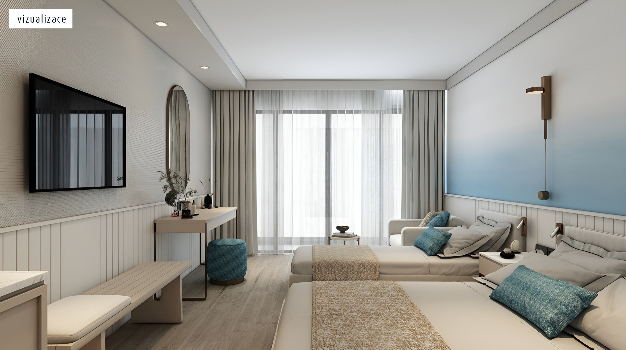 • Kétágyas szoba, Plus, Superior, részleges kilátással a tengerre: ugyanazok a felszereltségek, mint az alapszobákban, maximum 4 fő elszállásolására alkalmas, a szálloda így szabályozza a szállodában tartózkodók maximális számát.