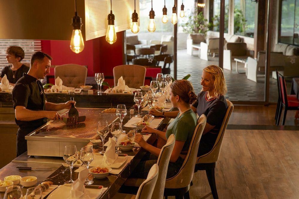 Svédasztalos reggeli, késői reggeli, ebéd és vacsora. Helyi és néhány import alkoholos és alkoholmentes italok.